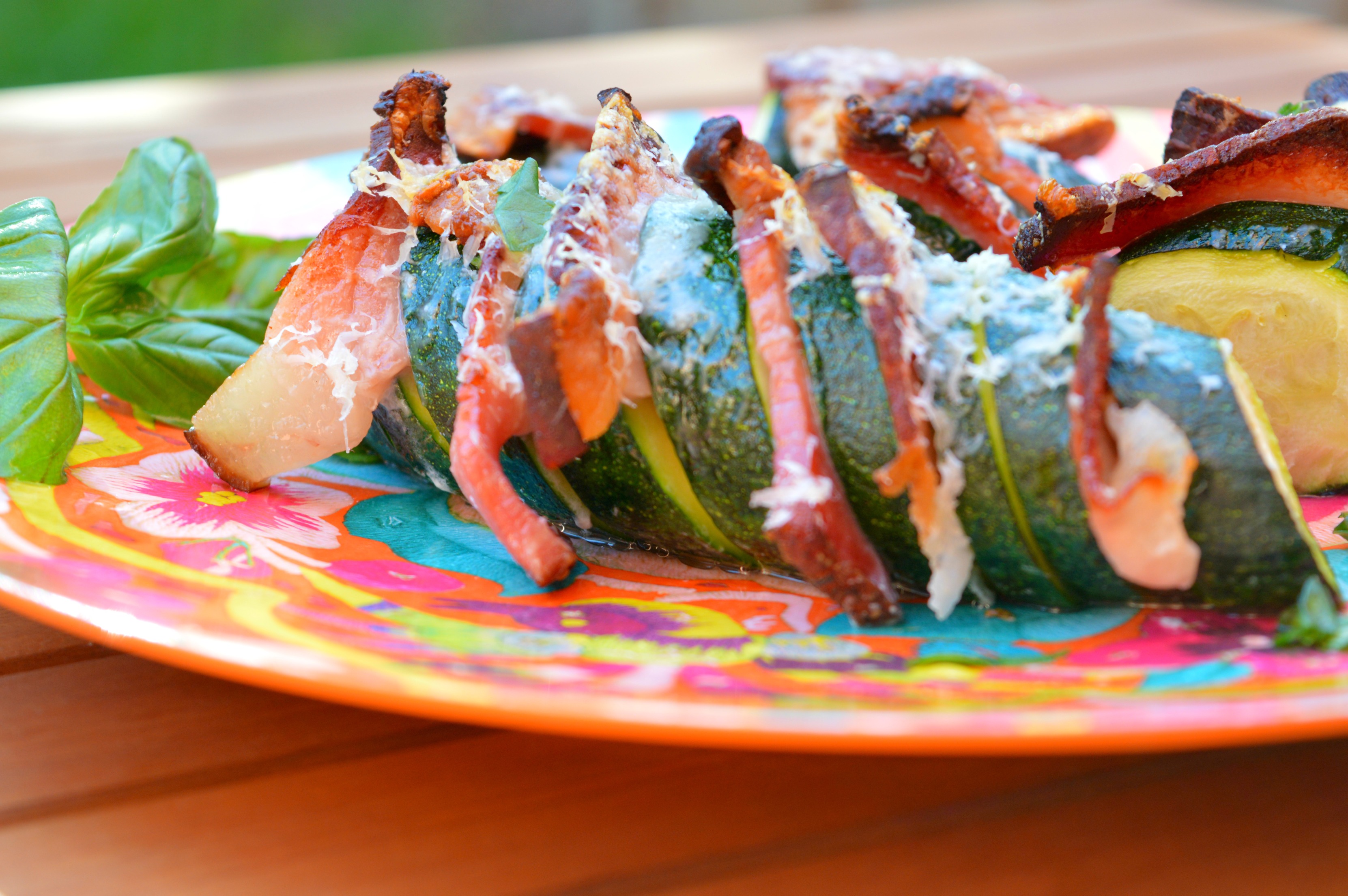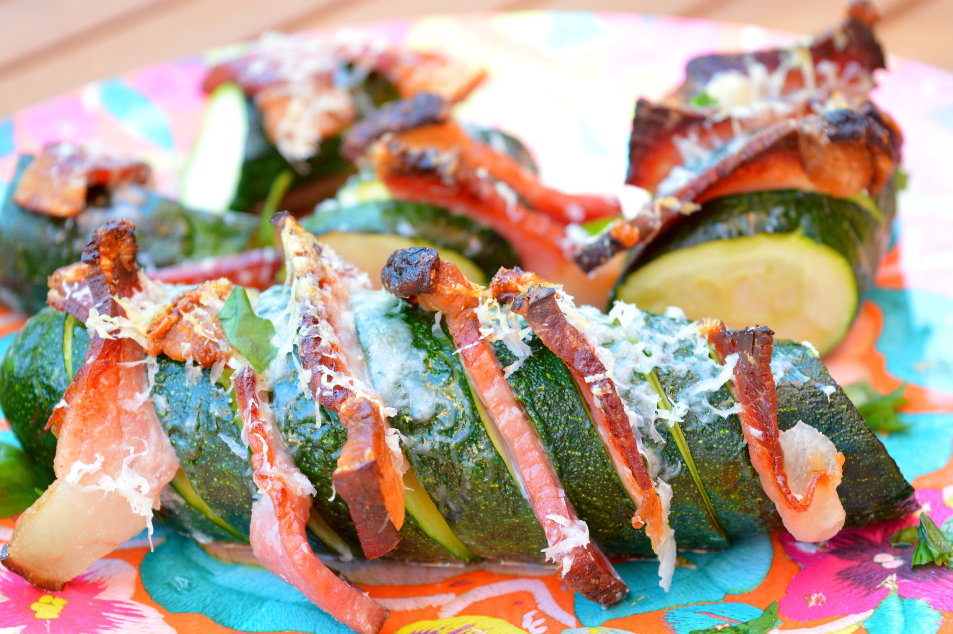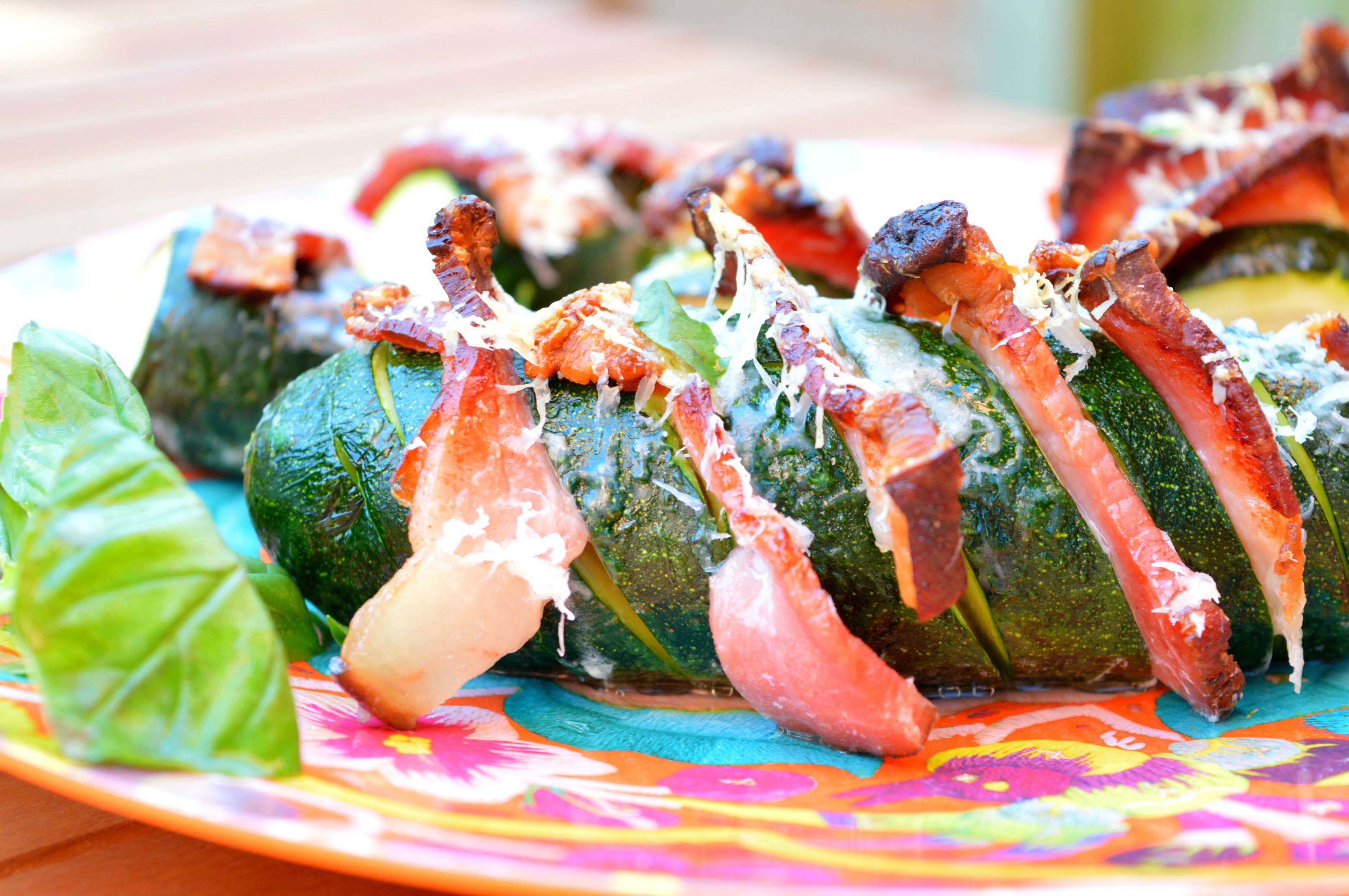 So, these are hasselback zucchini with bacon and Parmesan, or stuffed zucchini if you’d like( It’s amazing how many different ways to prepare zucchini are out there!)They’re quite naughty but really yummy so definitely worth the calories. Plus the fact that you’re actually having zucchini makes the recipe half healthy, if that makes sense at all:-) Probably not.