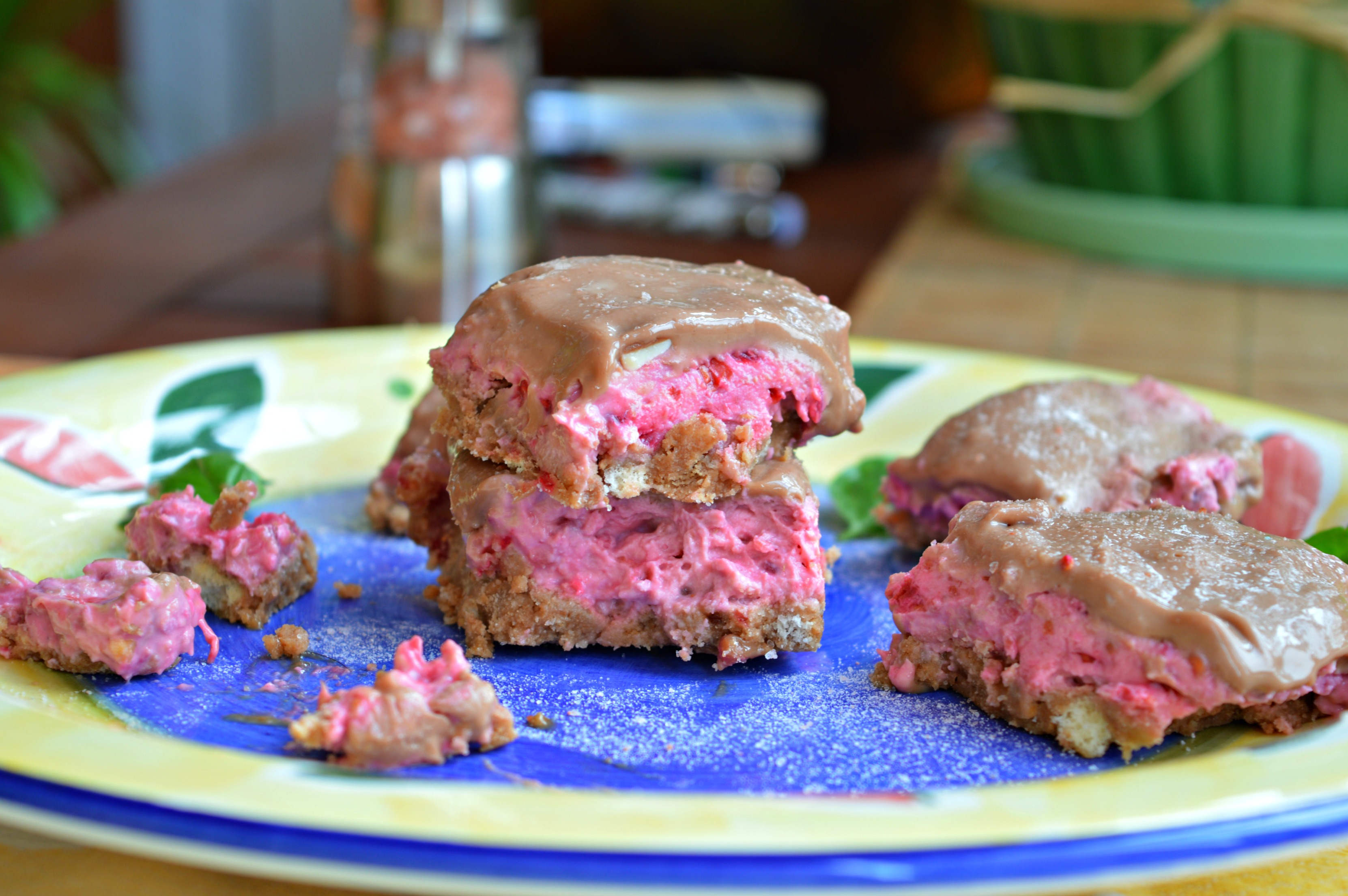 There’s a crunchy biscuit layer, cheesecake layer and then the chocolate ganache layer. It is delicious! And it’s a great way to use the summer berries!